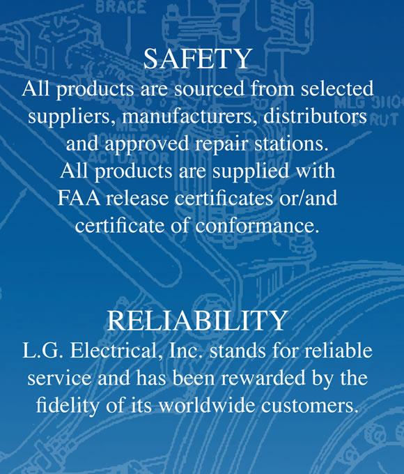 Conveniently located in the Greater Los Angeles Area, LG. ELECTRICAL is well positioned to support Airlines, FBO's and Landing Gear Overhaul Facilities with virtually any repair requirement. Whether it be Boeing (707, 727, 737,747, 757, 767,777) Airbus (A300, A310, A320, A330, A340), McDonnell Douglas (DC8, DC9, DC 10, MD 11, MD8O) , Lockheed (L1011) or Bombardier/ Canadair (Model CL601-RJ), L. G. ELECTRICAL's ever expanding customer base is benefitting from substantial cost saving and reduced turn around times, coupled with increased quality and reliability.
